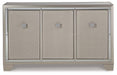 Reflect your love for contemporary style with this accent cabinet. It features a mirrored top and beveled mirror accents, adding both light and a touch of glam to your space. Decorated with faux crystal and chrome-tone pulls, the textured silvertone door fronts open to reveal adjustable shelving to meet all your storage needs.
