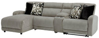 Delightfully modern. Exceptionally comfortable. When it comes to modular furniture with easy-elegant appeal, it’s hard to beat this power reclining sectional. Wrapped in a decadently plush stone-tone fabric for neutral versatility, this chic sectional is dressed to impress with a clean-lined divided back, curved track arms and a low-profile back for a relaxed, contemporary aesthetic.